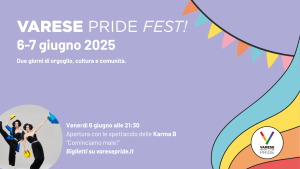 - Alle 21.00 Inaugurazione del Varese Pride Month con taglio del nastro Rainbow